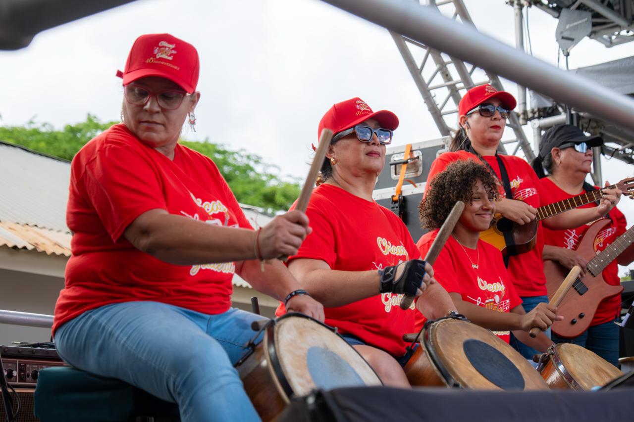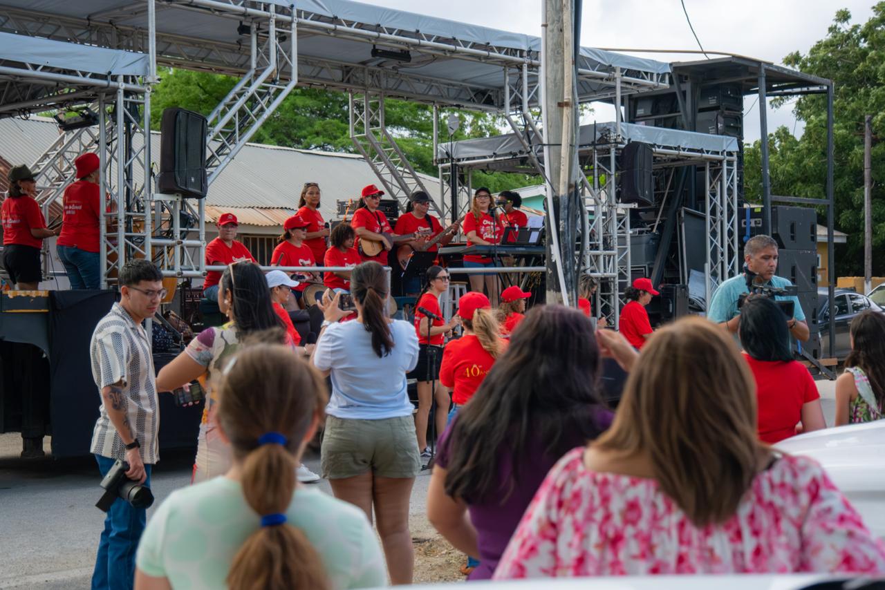 Con el acompañamiento de Chicas Gaiteras, se realizaron serenatas frente a cada residencia, donde los mayores pudieron disfrutar del ritmo tradicional de las gaitas. Los músicos se detuvieron en distintos puntos del vecindario, ofreciendo un momento de reencuentro, alegría y emoción, mientras los niños y jóvenes del barrio también participaron cantando y aplaudiendo. Este recorrido permite que la música funcione como un puente intergeneracional, conectando a toda la comunidad y destacando la importancia de mantener viva la tradición de las gaitas arubeñas.