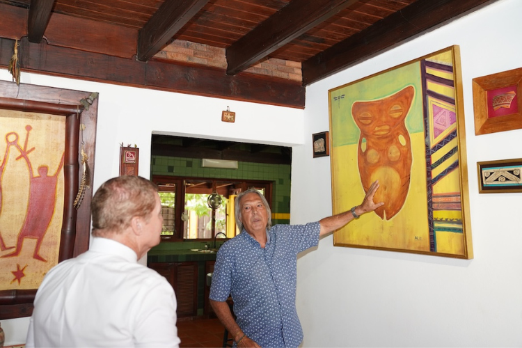 La galería está ubicada en la residencia del artista Anthony Croes, quien junto con su esposa ha dedicado décadas a la conservación de este tesoro cultural. Durante el recorrido, el Primer Ministro pudo admirar diversas piezas elaboradas por el propio Croes, todas ellas reflejando la identidad y resiliencia de los pueblos originarios de Aruba.